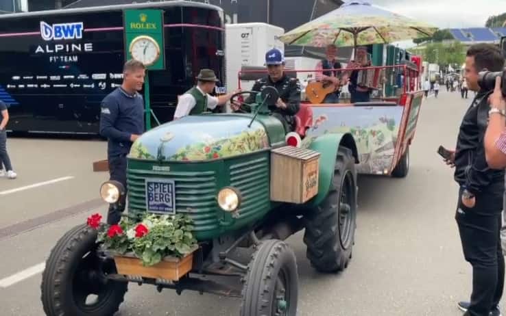 F1, GP Austria: Ocon guida un trattore con qualche difficoltà. E dietro di lui suonano...