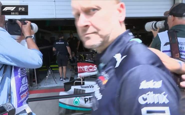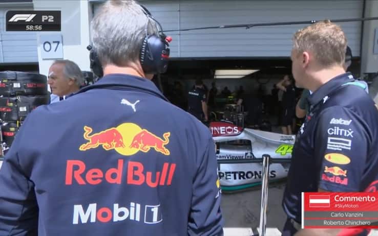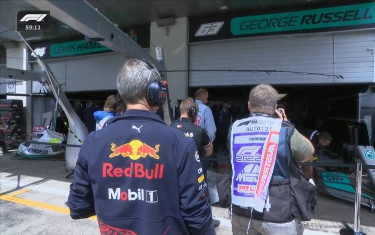 E' successo poco dopo il via delle Libere 2: lavoro intenso nel box Mercedes per mettere in pista le due W13 di Hamilton e Russell dopo il doppio incidente nelle qualifiche di venerdì. Due uomini della Red Bull osservano le operazioni, ma poi vengono mandati via... Tutto il weekend del GP d'Austria è live su Sky Sport F1, Sky Sport Uno, in 4K e in streaming su NOW