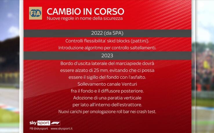 Formula 1Quello del saltellamento è un tema sempre caldo in F1. Dal GP del Belgio previste nuove regole per garantire maggiore sicurezza, ma cambiamenti sono previsti anche per il 2023. Ecco cosa sapere dai controlli della flessibilità degli skid block (vi spieghiamo cosa sono) all'introduzione di un algoritmo per domare il porpoising. La F1 è in Tutto il weekend in Francia live su Sky Sport F1, Sky Sport Uno, in 4K e in streaming su NOW