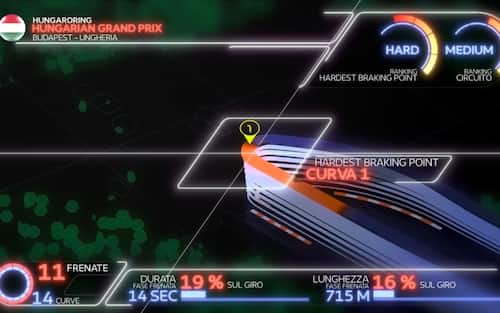 Alla scoperta con Brembo del punto più critico per le frenate all’Hungaroring. Circuito tortuoso, caratterizzato da alto carico aerodinamico e molto guidato. ma con una staccata piuttosto impegnativa dopo il rettilineo principale. Non è tra le piste più impegnative per l'impianto frenante, anche se la gestione delle temperature del materiale d'attrito rappresenta la chiave per gestire la gara tenendo l’usura sotto controllo. Weekend live su Sky e in streaming su NOW