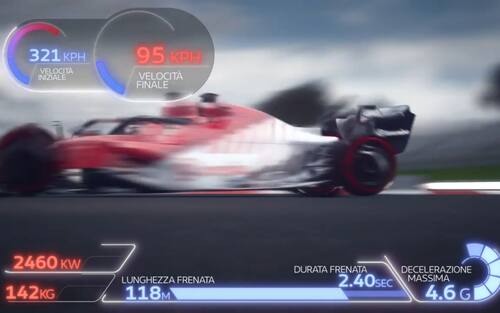 - La velocità finale è di 95 Km/h, la decelerazione massima di 4,6 G
