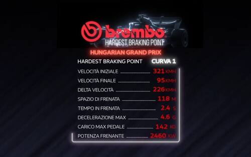 FRENARE ALL'HUNGARORING - Non può essere annoverato tra le piste più impegnative per l'impianto frenante, anche se la gestione delle temperature del materiale d'attrito rappresenta la chiave per gestire la gara tenendo l’usura sotto controllo. Analizziamo assieme a Brembo il punto più "delicato" in termini di frenate. Oggi, intanto, si va in pista per Libere 3 e qualifiche, con un meteo che non esclude acquazzoni a differenza della giornata di domani.