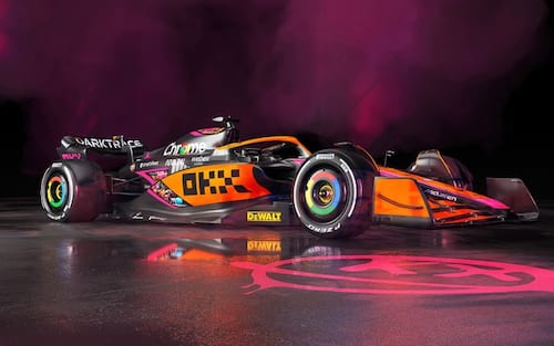 La McLaren correrà a Singapore e Giappone con una speciale livrea futuristica, con pennellate di rosa neon e illustrazioni motoristiche sulla pancia della vettura ispirate al cyberpunk. Un design che guarda al futuro, in particolare ai paesaggi urbani delle prossime tappe asiatiche. Nuovo look per Norris e Ricciardo, che per l'occasione avranno anche le tute personalizzate. McLaren in versione... cyberpunk!