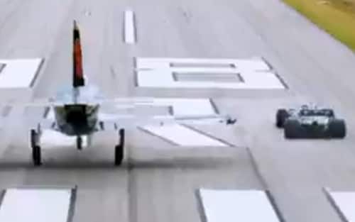 F1, quella sfida di Hamilton con la sua Mercedes a un caccia. E poi in volo! FOTO e VIDEO