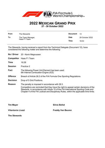 - Arrivano le prime penalità in vista del GP del Messico, terz'ultimo appuntamento del Mondiale di Formula 1