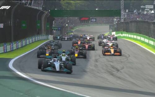 Inizio scoppiettante in Brasile: Safety Car al primo giro dopo un contatto tra Magnussen e Ricciardo, entrambi fuori. Alla ripartenza si riaccende la lotta tra Hamilton e Verstappen che si toccano alla S di Senna: l'olandese, scivolato indietro, riceve 5 secondi di penalità. Contatto anche tra Leclerc e Norris. Il primo sul traguardo a Interlagos è Russell che vince la sua prima gara in carriera davanti a Hamilton: la Mercedes ritrova una doppietta dopo 560 giorni