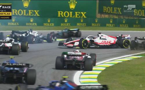 - La gara riparte con una mini-sprint di 11 giri. Prima del restart, Russell (che ha Hamilton alle sue spalle) chiede al muretto: "Corriamo o ci assicuriamo un 1-2?". La risposta della Mercedes: "Stai correndo, sii rispettoso"