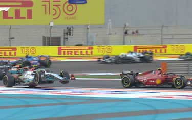 - Hamilton sorpassa Sainz in curva 1, poi lo spagnolo tenta di superare il britannico in curva 6: c'è il contatto, come un anno fa tra Hamilton e Verstappen