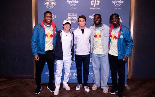 - I piloti dell'AlphaTauri con i giocatori dei New York Red Bulls (Major League Soccer)
