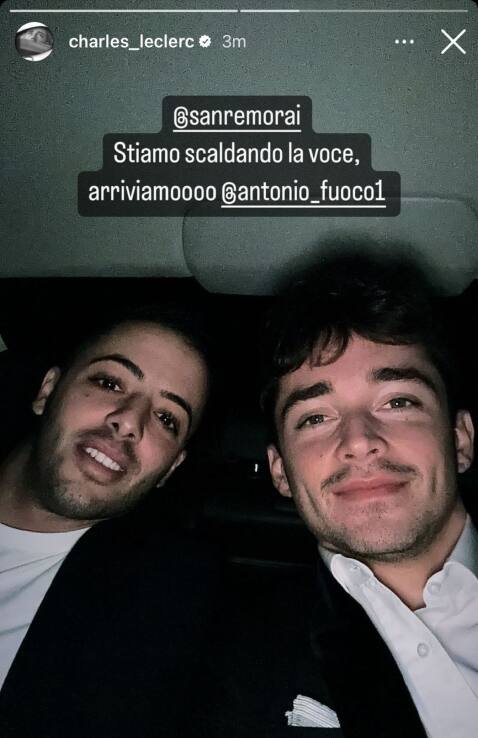 AL FESTIVALSerata all'insegna della musica per i ferraristi Charles Leclerc (F1) e Antonio Fuoco (Endurance). Il pilota monegasco ha postato sui social una foto che lo ritrae in macchina con il collega prima di raggiungere il Teatro Ariston per l'ultima e decisiva serata del Festival. "Stiamo scaldando la voce...", il suo messaggio scherzoso. Poi il saluto di Amadeus durante la diretta e una storia Instagram con Fedez