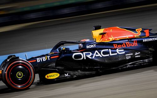 - Lo stint con le Hard non rende per la Ferrari: Leclerc perde terreno nei confronti di Perez, che lo passa agevolmente e si mette in 2^ posizione dietro a uno scatenato Verstappen