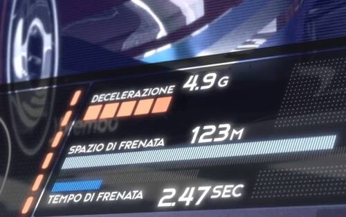 - Alla staccata della curva 27 le auto toccano duinque i 319 km/h prima di utilizzare i freni per 2 secondi e mezzo necessari a scendere a 113 km/h.