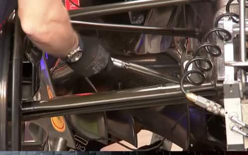 - È qui il segreto? La sospensione anteriore montata da Red Bull è stata presa molto in esame dopo il Gran Premio del Bahrein. E infatti è molto interessante da analizzare.