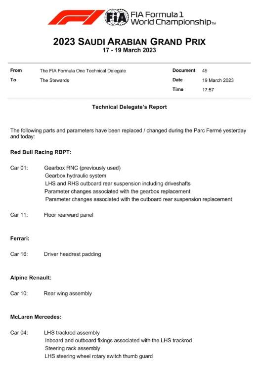 A circa due ore dal giro di formazione a Jeddah, sembrano conclusi i lavori nel box della Red Bull sulla monoposto di Sergio Perez. L'attività dei meccanici si è concentrata sul retro della RB19, poi è stato smontato il fondo e al momento tutto sembra tutto ok per la vettura del poleman. Sembra si sia trattato di un controllo generale e di routine dopo i problemi di ieri per Verstappen. Qui il comunicato FIA su cosa è stato cambiato sulla macchina dell'olandese (e non solo).