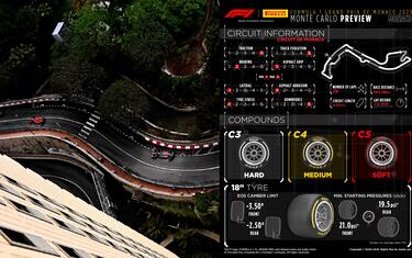 - Il tris di mescole più morbido della gamma Pirelli sarà protagonista sul tracciato di Monte-Carlo. Verranno infatti portate C3 come P Zero White hard, C4 come P Zero Yellow medium e C5 come P Zero Red soft.