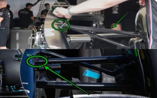 - Quello appena descritto è un aspetto molto importante perché le macchine ad effetto suolo, per far funzionare bene i canali Venturi, devono avere una piattaforma il più possibile stabile e il meno possibile sensibile alle variazioni di beccheggio, rollio e quindi di assetto. Una sospensione in stile Red Bull e Aston Martin.