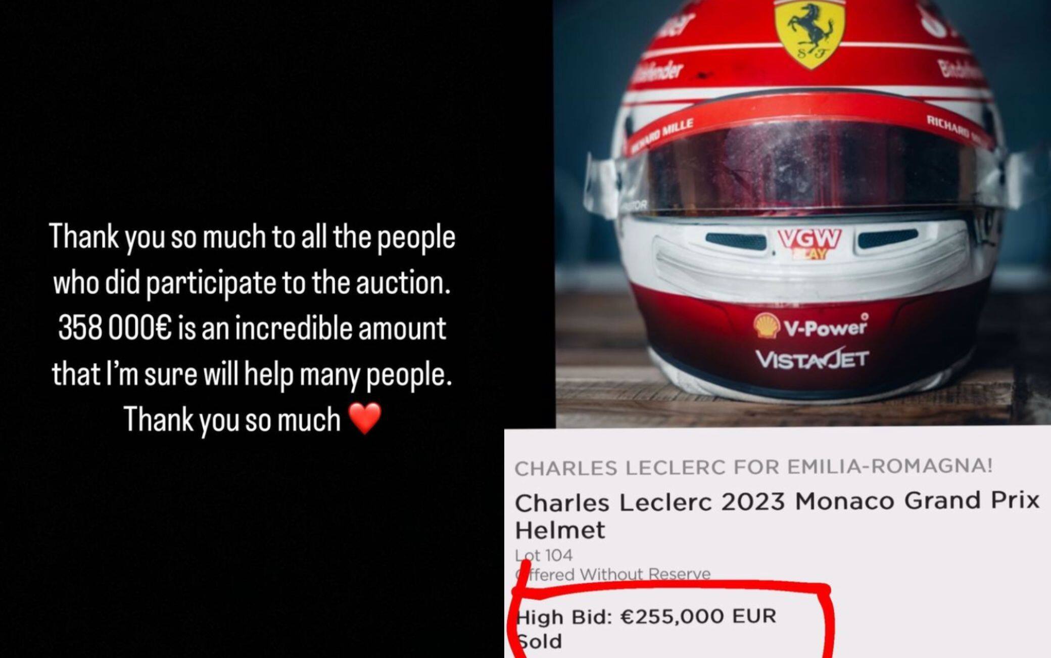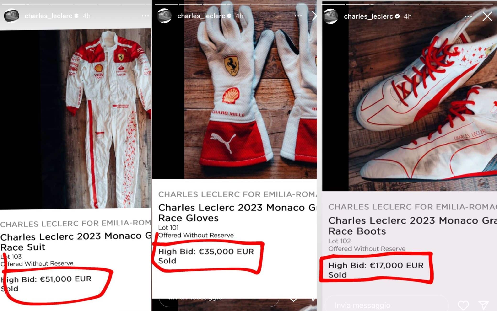 Leclerc, oltre 350mila euro per l'Emilia-Romagna: all'asta gli accessori di Monaco