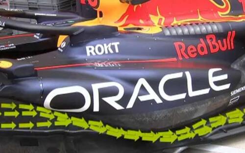 - Con questo cambiamento, Red Bull ha aumentato tantissimo il sottoquadro, quindi la portata d'aria. Questo è un concetto molto caro a Red Bull che dimostra di essere il team più estremo in questo.
