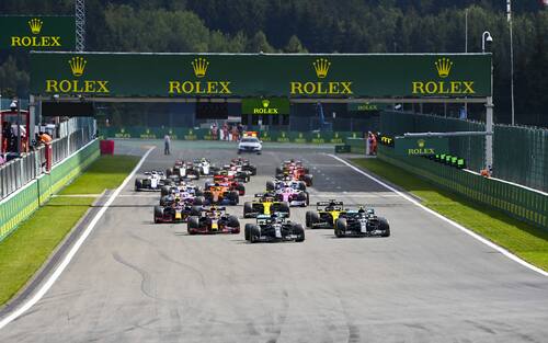 - 2019: Verstappen tenta di passare Raikkonen alla prima curva e lo sperona. L’Alfa si solleva e ricade, Ricciardo se la trova davanti, rallenta e viene tamponato da Stroll. Verstappen riparte con l’anteriore sinistra “aperta” e vola fuori all’Eau Rouge. 2018: carambola di vetture innescata da Hulkenberg, che manca completamente.