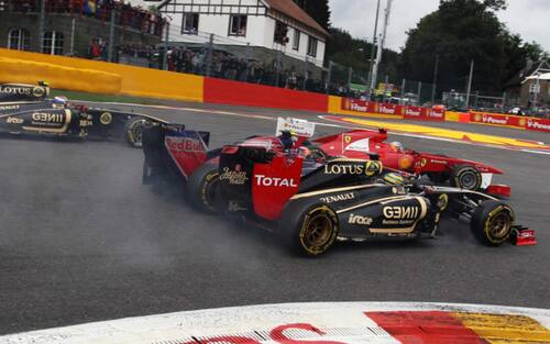 - 2016: le due Ferrari (3^ e 4^ in griglia) saltano Max Verstappen (2°) al via e Raikkonen si piazza alle spalle del leader Rosberg, ma viene stretto da Vettel che dall’esterno taglia la curva, e viene anche colpito all’interno da Verstappen, che giunge a La Source con quasi tutta la vettura sul cordolo. Vettel finisce in testacoda (ala anteriore rotta), mentre i detriti in pista causano le forature di Raikkonen, Sainz e Nasr. Alla staccata di Les Combes Wehrlein tampona violentemente Button.