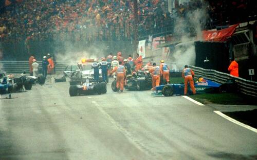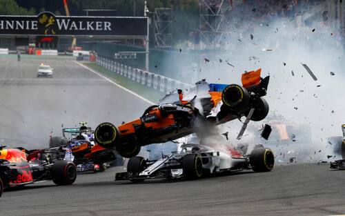 - 2018: carambola di vetture innescata da Hulkenberg, che manca completamente il punto di staccata a La Source: travolge Alonso e l’inerzia è tale che la McLaren dello spagnolo sale sulla Sauber di Leclerc e, atterrando, trancia l’ala posteriore di Ricciardo che, a sua volta, tampona Raikkonen, forandogli la posteriore destra.