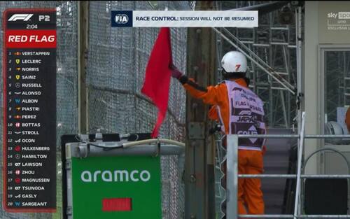 Terminano con una bandiera rossa le Prove Libere 2: Gasly, dopo un bloccaggio dell'anteriore destra, va a muro e fa chiudere la sessione con due minuti di anticipo. Sessione che vede il ritorno di Max Verstappen in prima posizione, seguito da Leclerc, Norris e Sainz. Tutto il fine settimana è in diretta su Sky Sport F1, Sky Sport Uno, in 4K e in streaming su NOW