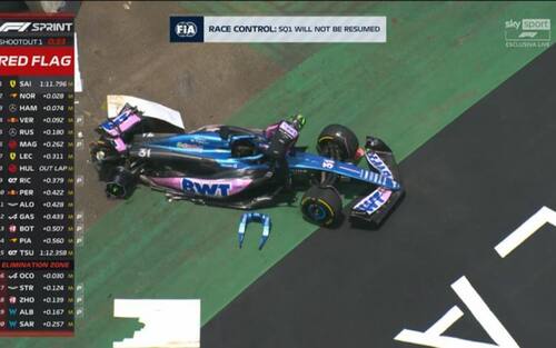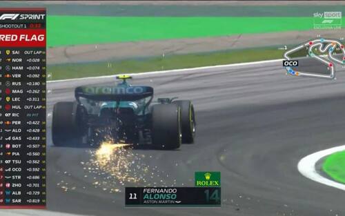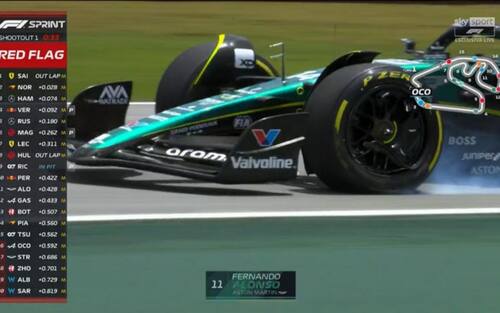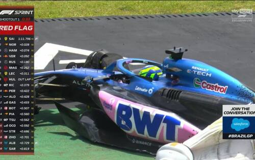 Termina con un incidente tra Ocon e Alonso il Q1 della qualifica Shootout a Interlagos. Alonso esce da curva 3 andando prima esterno e poi tagliando verso l'interno; dietro di lui il francese perde il controllo della macchina e tocca lo spagnolo. Alpine a muro e sessione che mette entrambi i piloti out; episodio notato dai commissari. Tutto il weekend del Brasile in diretta su Sky Sport F1, Sky Sport Uno, in 4K (canale 213) e in streaming su NOW