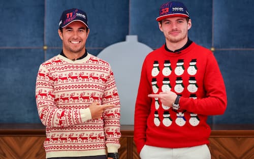- Foto di Natale anche per l'altro pilota della Red Bull, Sergio Perez, qui con Max a indossare un classico maglione di Natale.