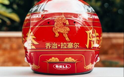 - Il 2024 invece è l'anno del drago, per questo Russell lo ha inserito insieme alla tigre nel suo casco