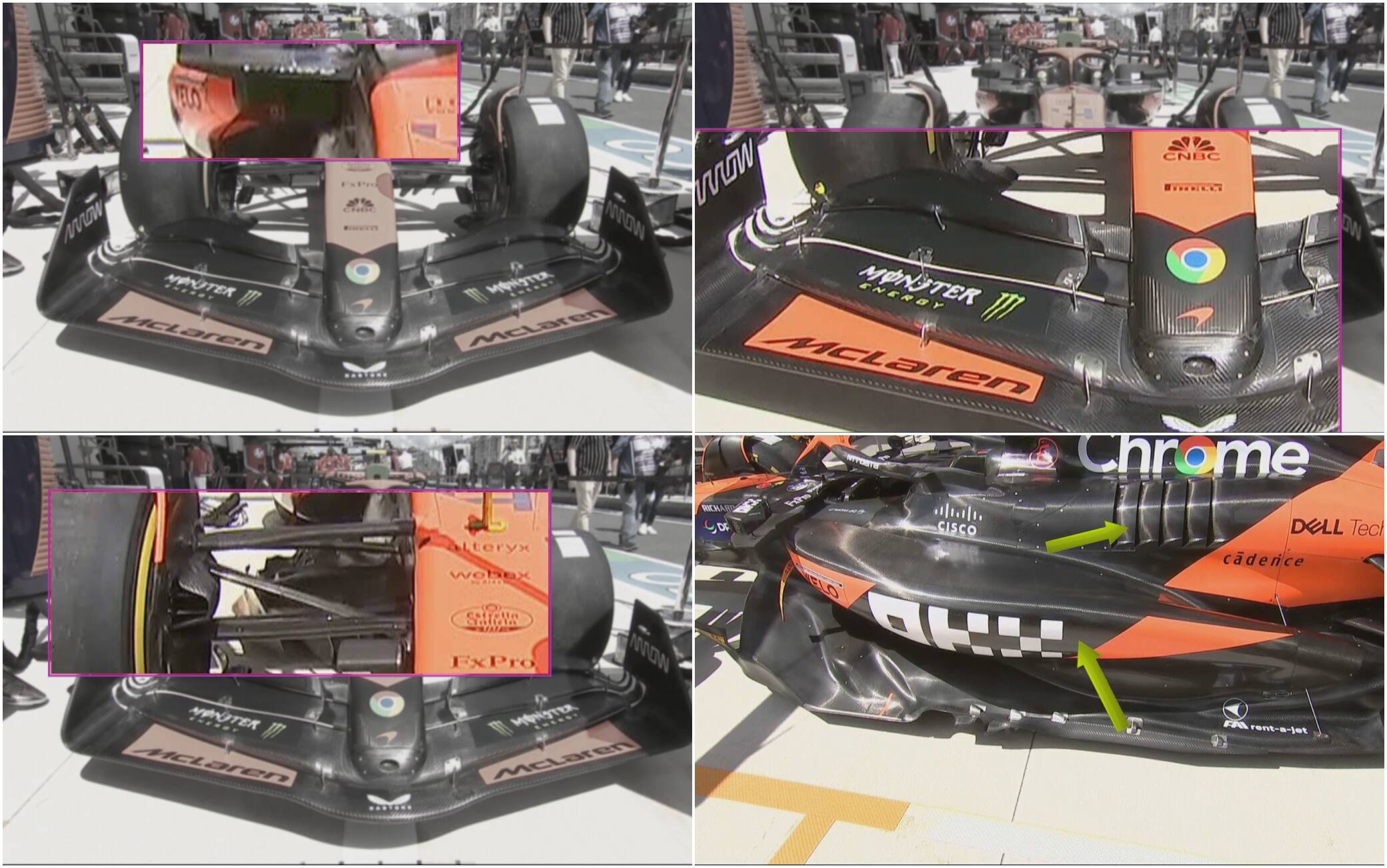 Negli States abbiamo visto diverse novità significative su Mercedes e Aston Martin, ma la star degli aggiornamenti è stata la McLaren. Un pacchetto esteso, con la MCL38 rivista in tutte le aeree. Gli ingegneri hanno messo mano più o meno in ogni angolo della vettura. Il numero di novità di Miami coinvolge l’intera veste aerodinamica: dall’ala anteriore, passando per le prese d’aria dei freni, le bocche dei radiatori ridisegnate, il fondo e bodywork.