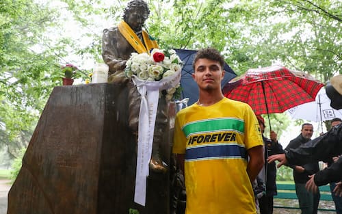 - Non solo Vettel, anche Norris è stato immortalato davanti alla statua di Senna