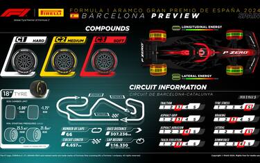 - Dal Canada alla Spagna. Il Mondiale arriva al suo decimo round per affrontare uno dei circuiti che i team conoscono meglio (per anni sede dei test pre campionato) ma anche più impegnativi dal punti di vista tecnico e delle gomme. Ecco allora quali sono le scelte e le informazioni fornite da Pirelli per questo appuntamento a Barcellona-Montmeló.