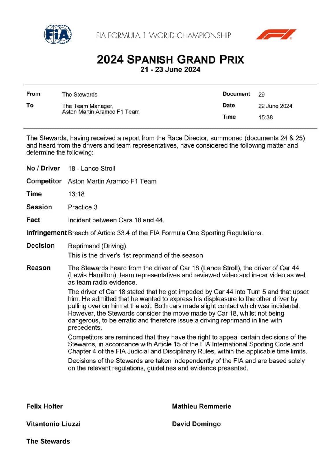 nelle libere 3Investigazione ma solo una repriemnda dopo l'episodio avvenuto nella terza sessione di libere: incontro molto ravvicinato tra Stroll e Hamilton. Il canadese dell'Aston Martin sembra deliberatamente voler colpire il 7 volte campione del mondo. Tutto il weekend della F1 è come sempre in diretta su Sky e in streaming su NOW
