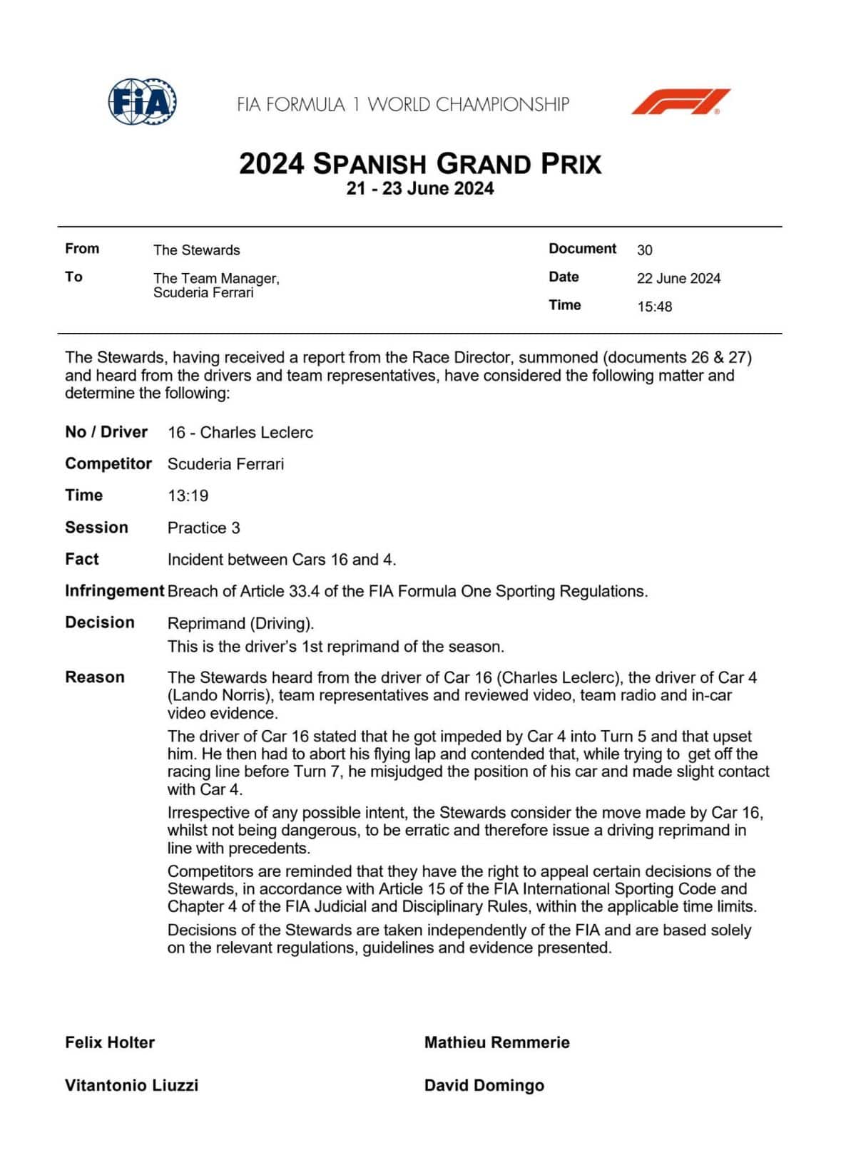 F1, GP Spagna: contatto Leclerc-Norris nelle terze libere, reprimenda per Charles. VIDEO
