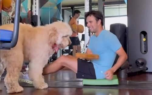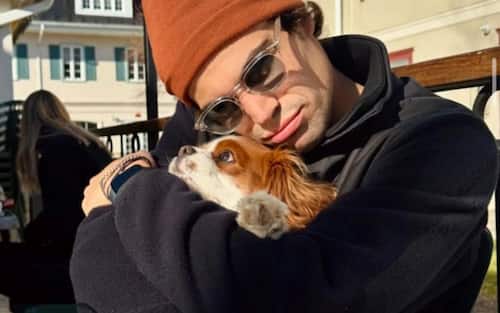- Il pilota dell'Aston Martin qui con il cucciolo della sua compagna, la modella Marilou Bélanger. Non è il primo amico a quattro zampe a far parte della sua famiglia
