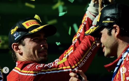 Carlos Sainz correrà per la Williams a partire dalla stagione 2025. L'attuale compagno alla Ferrari, Charles Leclerc ha voluto salutare il suo collega con un messaggio su Instagram allegando anche alcune immagini: "Ti auguro il meglio per la tua nuova avventura nel prossimo anno, abbiamo ancora metà stagione insieme per vivere momenti speciali come compagni di squadra"