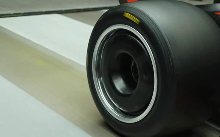 La galleria del vento può riprodurre per regolamento una velocità massima di 180 km/h, il che impone ulteriori indagini in fase di test sulla pulizia dei flussi o le turbolenze generate dalla scia del profilo della gomma sotto carico. Questo viene eseguito con tutti i sensori aggiuntivi, per esempio i famosi rastrelli che vengono montati dietro gli pneumatici che vediamo spesso soprattutto durante la prima ora di prove libere. Il modello che corre sul tappeto mobile delle gallerie del vento è per regolamento in scala massima al 60% ed utilizza pochissimi treni di gomme specifici perché l’usura è minima.