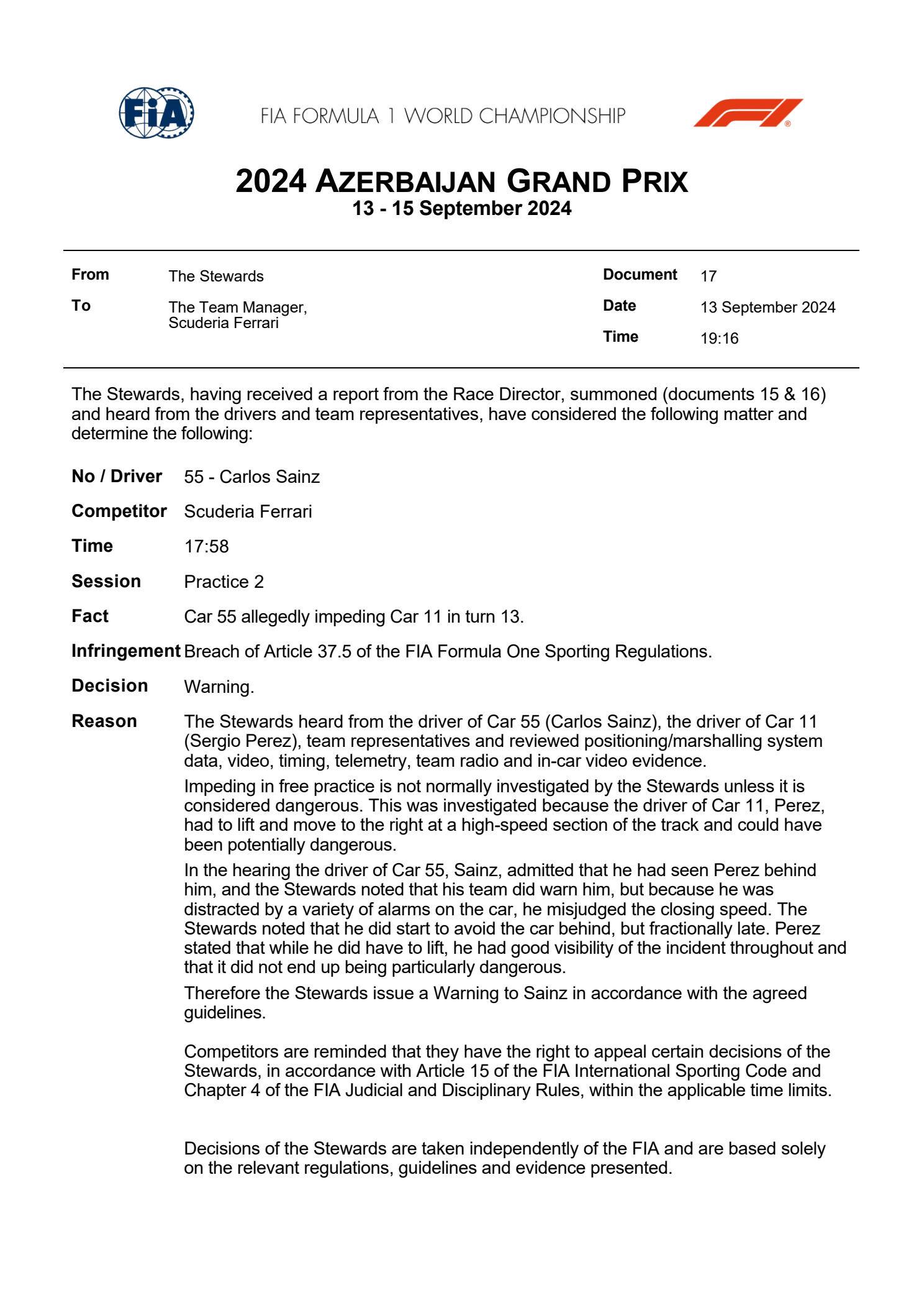 videoDoppio impeding nelle libere a Baku. Il primo è di Gasly che si trova sulla strada di Norris in curva 19: il francese ha avuto problemi con la batteria e il pilota McLaren reagisce alzando il dito medio. Il secondo impeding è di Sainz (sanzionato con un warning) su Perez in curva 13; anche il messicano protesta con il ferrarista. Tutto il weekend è live su Sky e in streaming su NOW