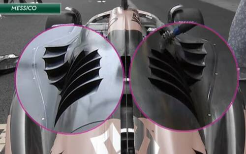 - Per smaltire temperatura, alta in Messico, in casa McLaren sono state aperte branchie laterali del cofano motore e quelle sovrastanti le pance. Poi nella parte superiore del cofano motore ci sono più aperture.