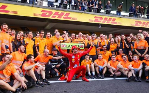 Dalla bandiera a scacchi ai fiumi di champagne. Tutto il trionfo di Sainz a Città del Messico nelle immagini più belle della festa Ferrari. E nella foto finale di rito spunta anche un intruso: il ceo di McLaren, Zak Brown. Una gag poi 'restituita' da Carlos agli avversari. Il Mondiale torna la prossima settimana in Brasile, tutto in diretta su Sky e in streaming su NOW