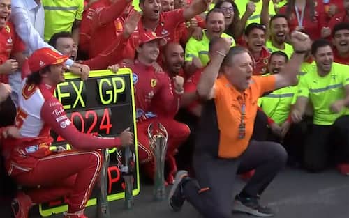 Ferrari, la festa dopo il successo di Sainz al GP Messico: tra sorrisi, champagne e gag...