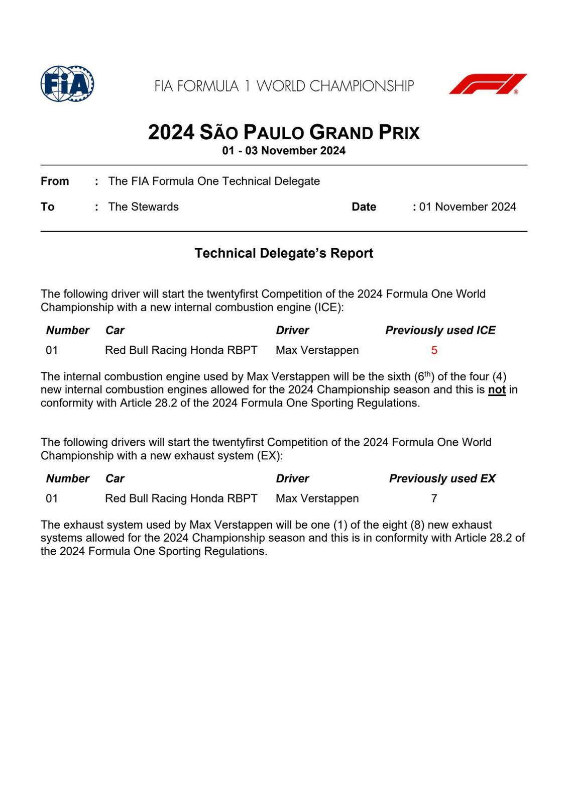 RED BULLParte in salita il weekend brasiliano dell'olandese: come trapelato nei giorni scorsi, necessaria la sostituzione del motore endotermico e inevitabile penalità di cinque posizioni nella griglia di partenza del GP. La lotta per il titolo s'infiamma ancora di più. Tutto il fine settimana a Interlagos live su Sky e in streaming su NOW