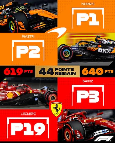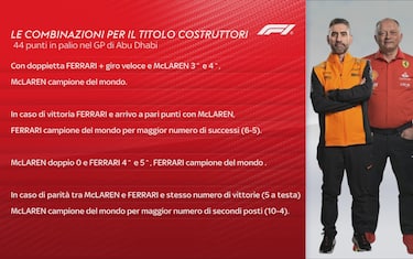 Dopo il titolo piloti assegnato a Verstappen a Las Vegas, il campionato di Formula 1 deve assegnare oggi a McLaren o Ferrari per il titolo Costruttori. Una battaglia in cui il team 'Papaya' non è riuscita a chiudere i conti in Qatar. Qui la situazione e le combinazioni per il titolo.