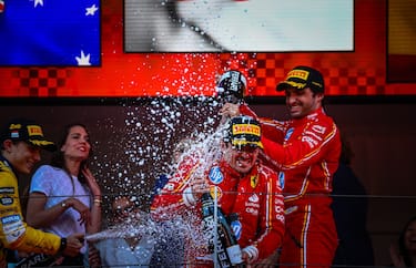 Assente giustificato in Arabia: mercoledì Sainz aveva saltato la giornata dedicata alla conferenza stampa per poi tornare al volante per libere 1 e libere 2, ma non in buone condizioni. A posteriori gli viene diagnosticata un'appendicite che lo costringe ad essere operato: al posto dello spagnolo scende in pista Oliver Bearman. Tornato dall'intervento, Sainz compie un'impresa in Australia: con il ritiro di Verstappen, Sainz prende il comando della gare fino al termine del GP. A distanza di sole 2 settimane dall'operazione all'appendicite, lo spagnolo riesce a salire sul gradino più alto del podio - davanti al compagno di squadra Leclerc - portandosi a casa il suo 3° gran premio con la Rossa (il primo della stagione)