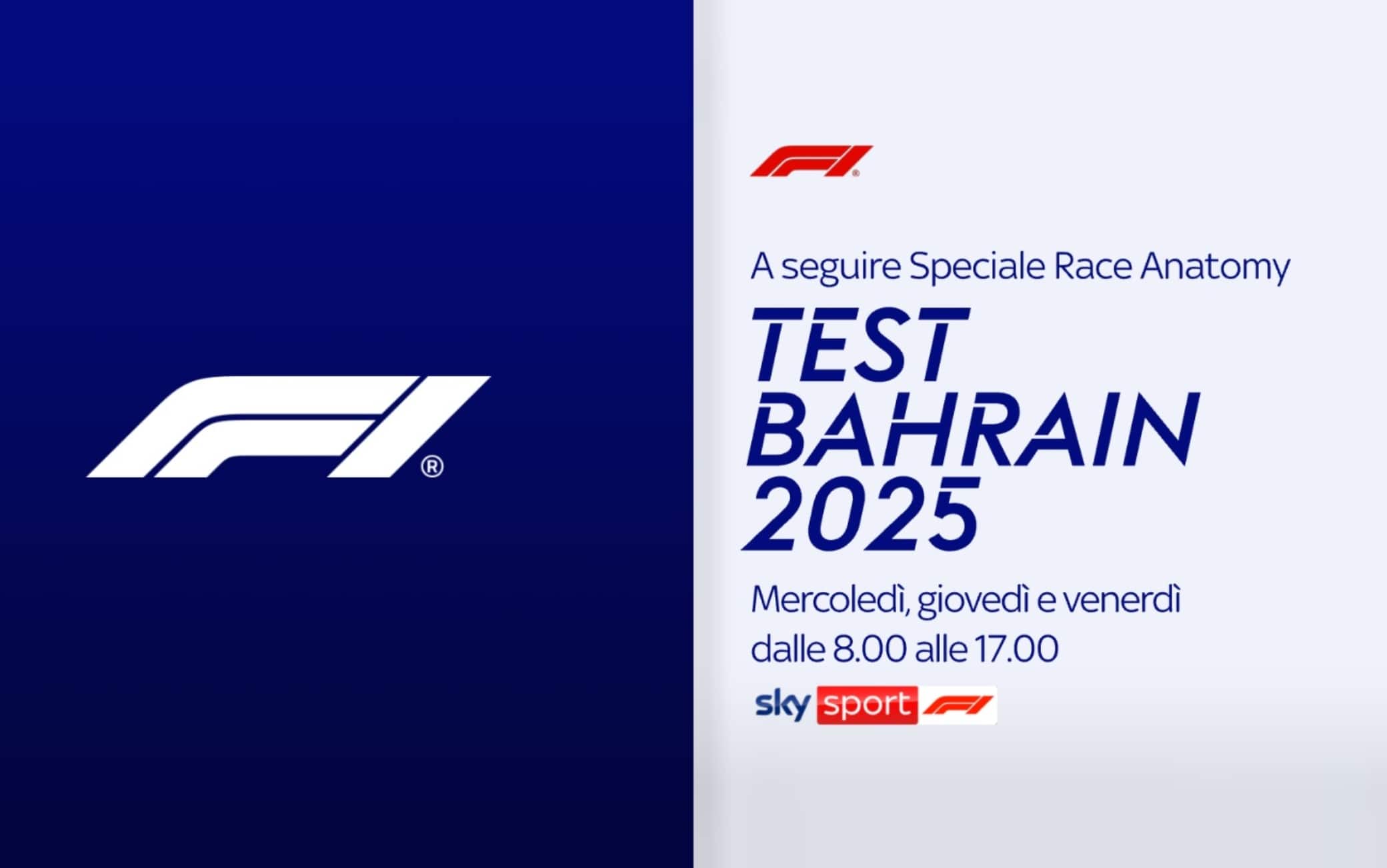 Per ciascuna giornata di test, sarà il canale Sky Sport F1 a raccontarvi dal primo all'ultimo giro la doppia sessione, quella del mattino che scatterà alle 8 e quella del pomeriggio che - dopo la pausa pranzo alle 12 - avrà inizio alle 13 e si concluderà alle 17. Telecronaca affidata a Carlo Vanzini, in cabina di commento con Vicky Piria e Ivan Capelli che si alterneranno nelle analisi tecniche insieme gli ospiti che interverranno durante la lunga diretta. Collegamenti per tutta la giornata dal circuito con Mara Sangiorgio e Matteo Bobbi, inviati sul posto, e Roberto Chinchero insider in sala stampa. Ogni sera alle 20.30, appuntamento con 'Speciale Reparto Corse', con il riassunto di giornata e contributi speciali raccolti durante le sessioni su Sky Sport F1 e NOW. Su Skysport.it la cronaca testuale live della tre giorni di Sakhir, i tempi, le foto i video e tutti gli approfondimenti per portarvi nel vivo dell'azione in pista. Aggiornamenti continui anche su Sky Sport24 e i nostri social.
