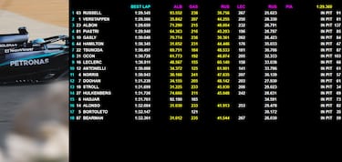 Russell il più veloce del Day-3. Hamilton 6°, Leclerc 9°