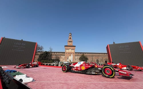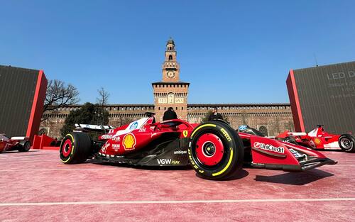 Ferrari F1, evento con Hamilton e Leclerc a Milano in Piazza Castello. FOTO