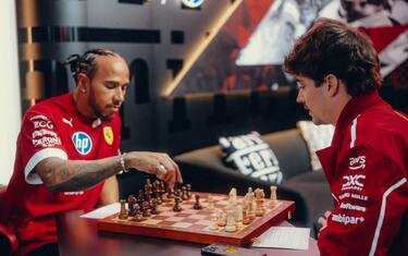 Ferrari, Hamilton e Leclerc si sfidano a scacchi prima di andare in pista. FOTO