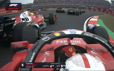 Leclerc 5° e danno all'ala: contatto con Hamilton