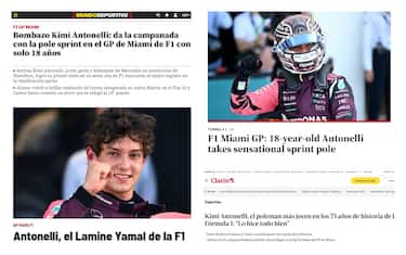 "Antonelli, il Lamine Yamal della F1". Così 'Marca' ha celebrato la storica pole position di Kimi nella qualifica Sprint di Miami. Tutto il mondo ha omaggiato il bolognese, più giovane poleman nella storia della F1 con i suoi 18 anni. Ecco la rassegna web. Il GP Sprint di Miami è live alle 18 su Sky e in streaming su NOW